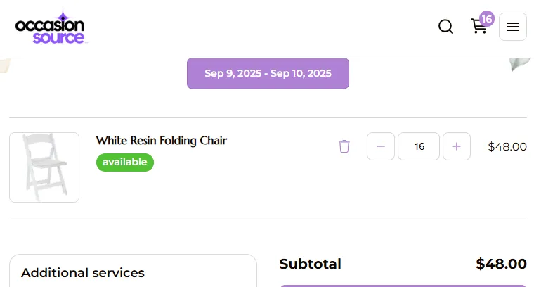 After you've found the rental items that will make your event stand out, it's time to secure your choices. Booking is a breeze on our platform. Simply add the desired items to your cart, select your event date, and specify the quantity you need. You'll see an easy-to-understand pricing breakdown, including any additional services like setup and teardown if required. Once you're satisfied with your choices, proceed to the checkout. You'll be asked to provide some basic event information, payment details, and delivery preferences. Rest assured, our booking process is secure and user-friendly. After completing the booking, you'll receive a confirmation email, and your event item(s) will be reserved for your special day.